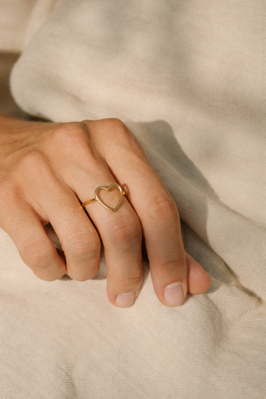 Dainty Open Heart Ring - Waterproof Gold Stainless Steel Minimalist Jewelry