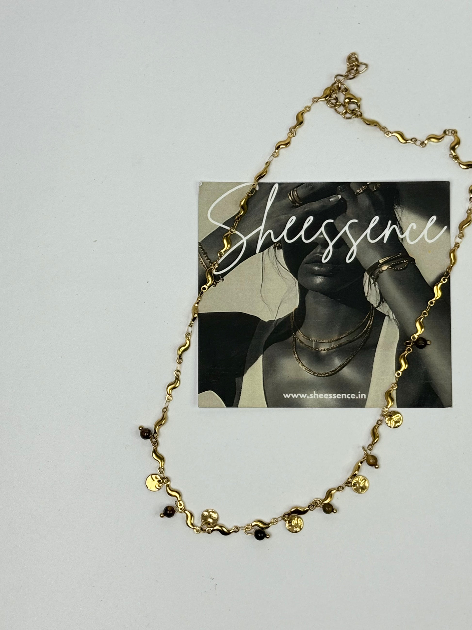 Effortless Elegance for the Modern Muse. Meet the Wavy Gold Charm Necklace, the perfect balance of unique texture and sleek minimalism. Featuring a distinctive wavy link chain accented with deep black beads and polished circular charms, this piece is built for the girl who wants luxury that actually lasts. Crafted from premium 316L stainless steel, it’s designed to be a permanent part of your jewelry rotation.