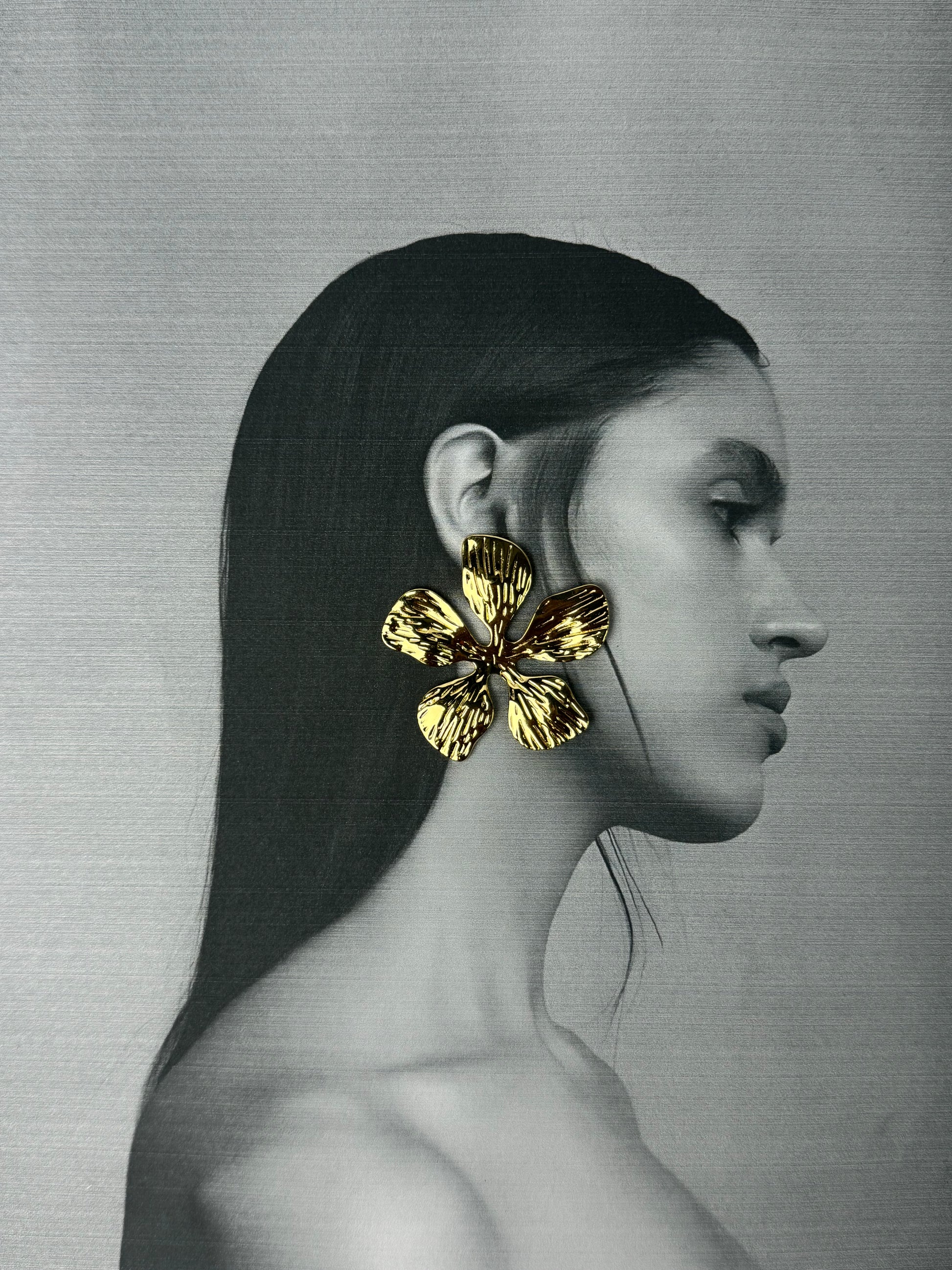 Bold yet effortless, these flower-inspired stud earrings are designed to stand out. Finished in 18K gold plating, they are waterproof, anti-tarnish, and made for everyday wear with no fading or fuss. Lightweight yet sculptural, they deliver clean Pinterest-style aesthetics with a modern Gen Z edge.