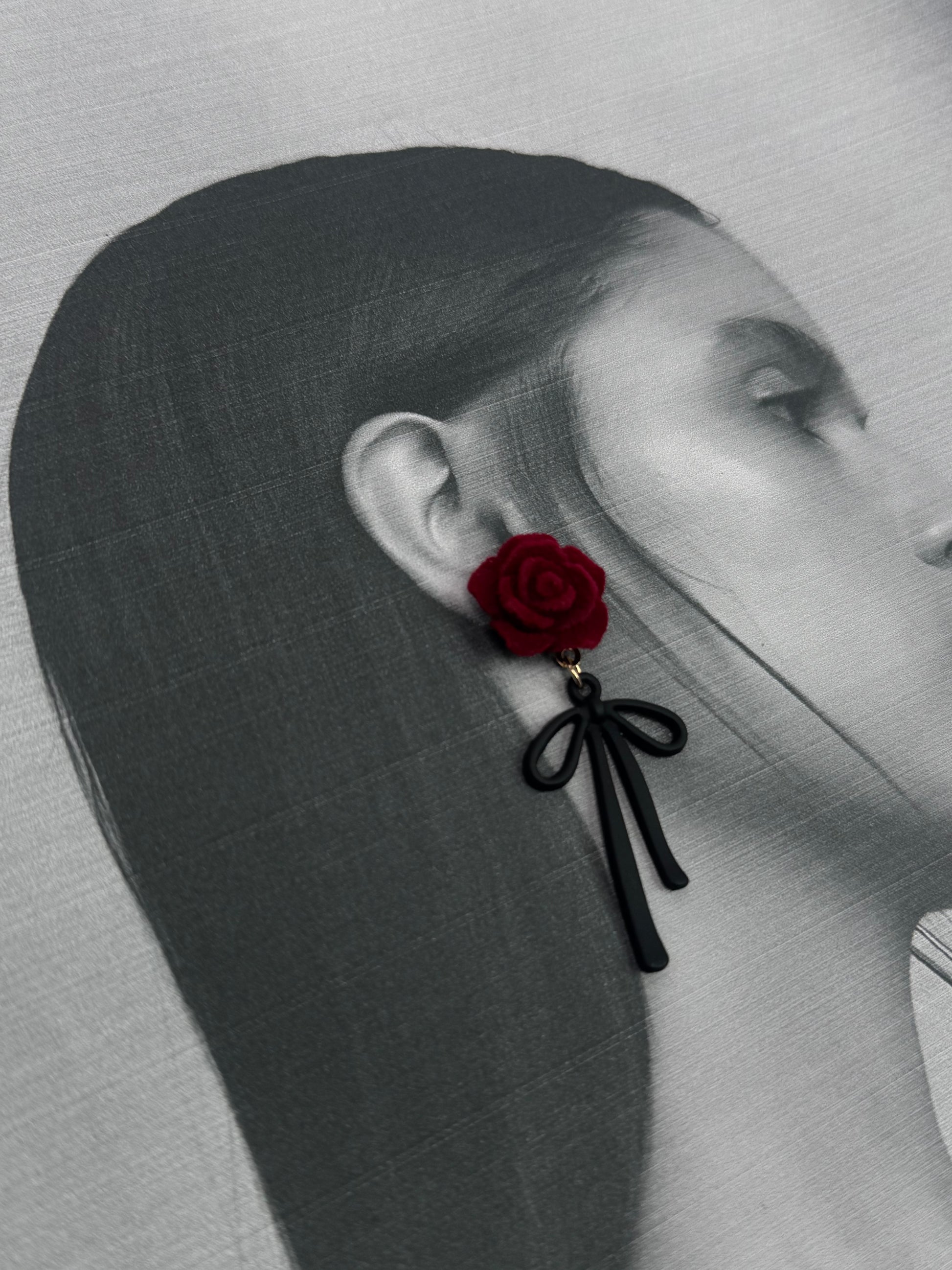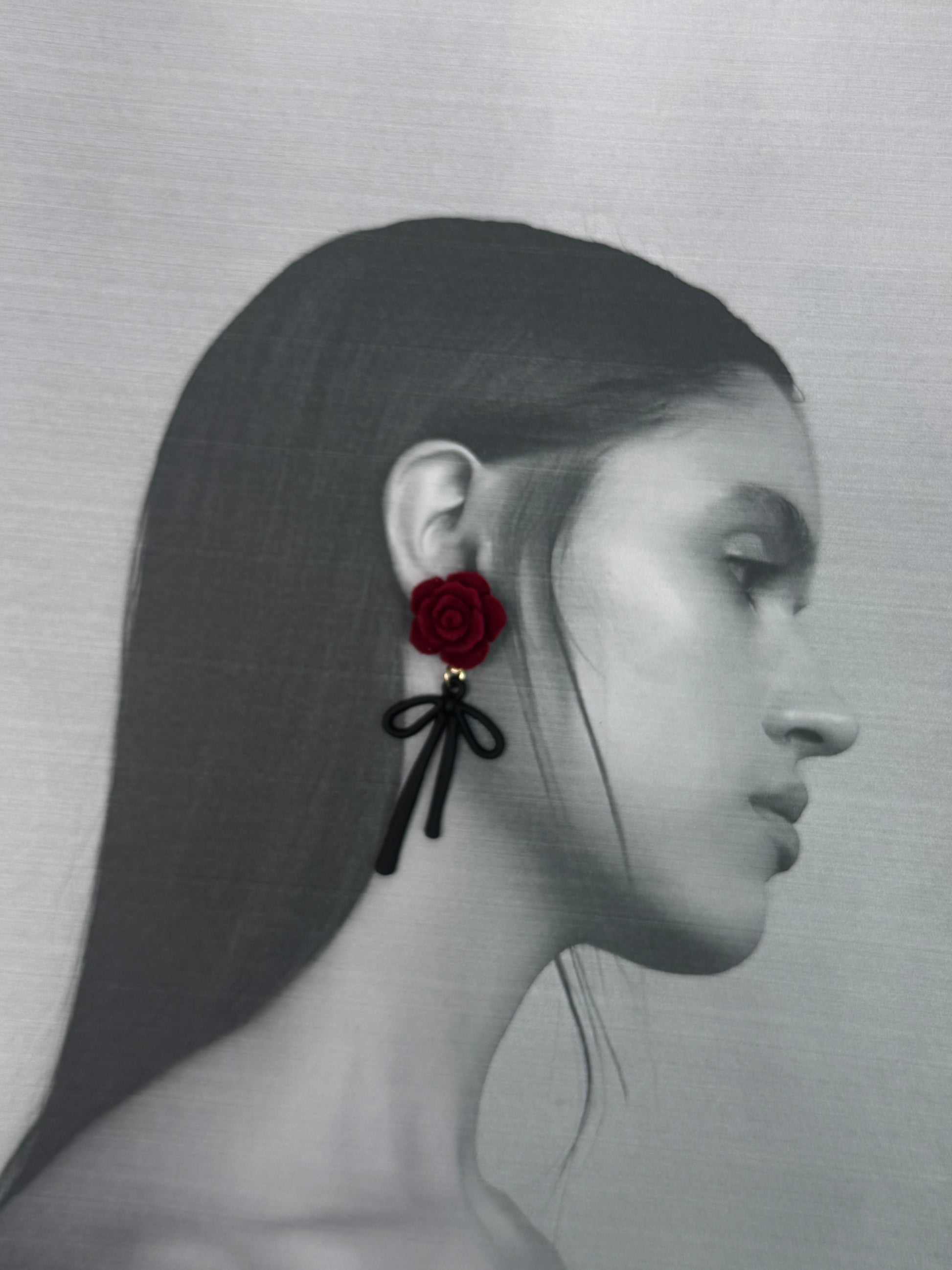 Embrace your "Coquette" era with these ultra-trendy matte red rose and bow earrings. Straight from the streets of Seoul, these studs perfectly blend vintage romance with a modern, edgy matte finish that Gen Z style icons are obsessed with right now.
