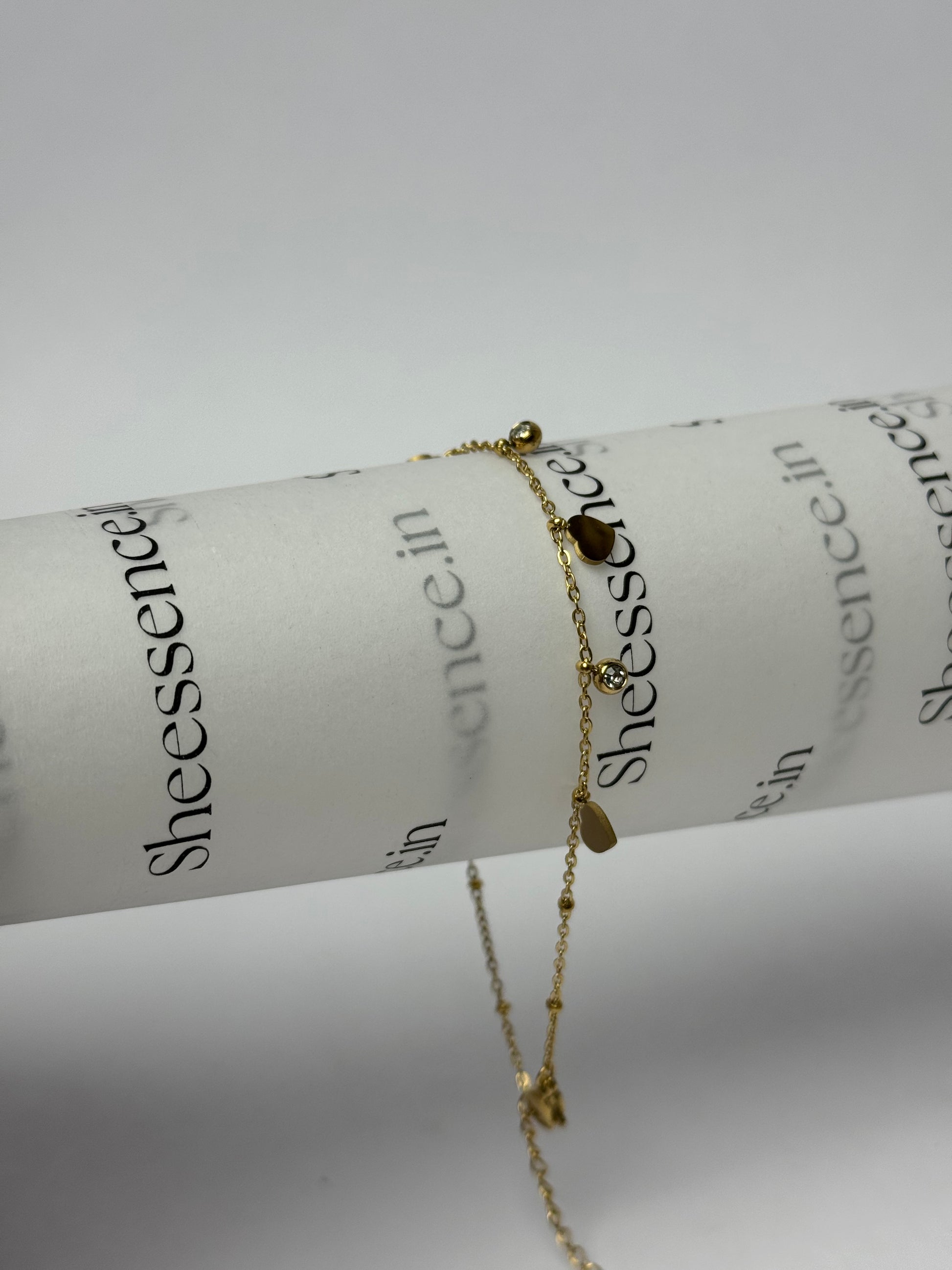 Multi-Charm Gold Anklet – Heart & Round Solitaire Crystal