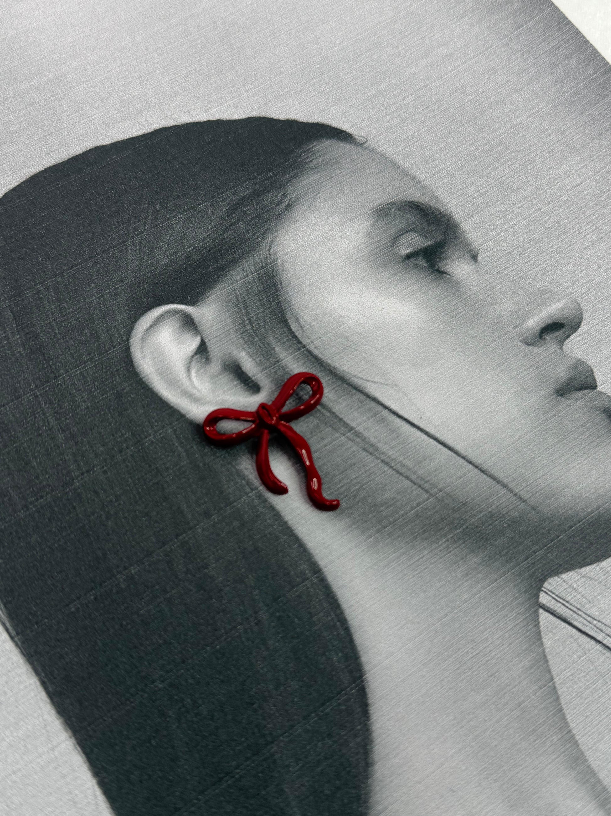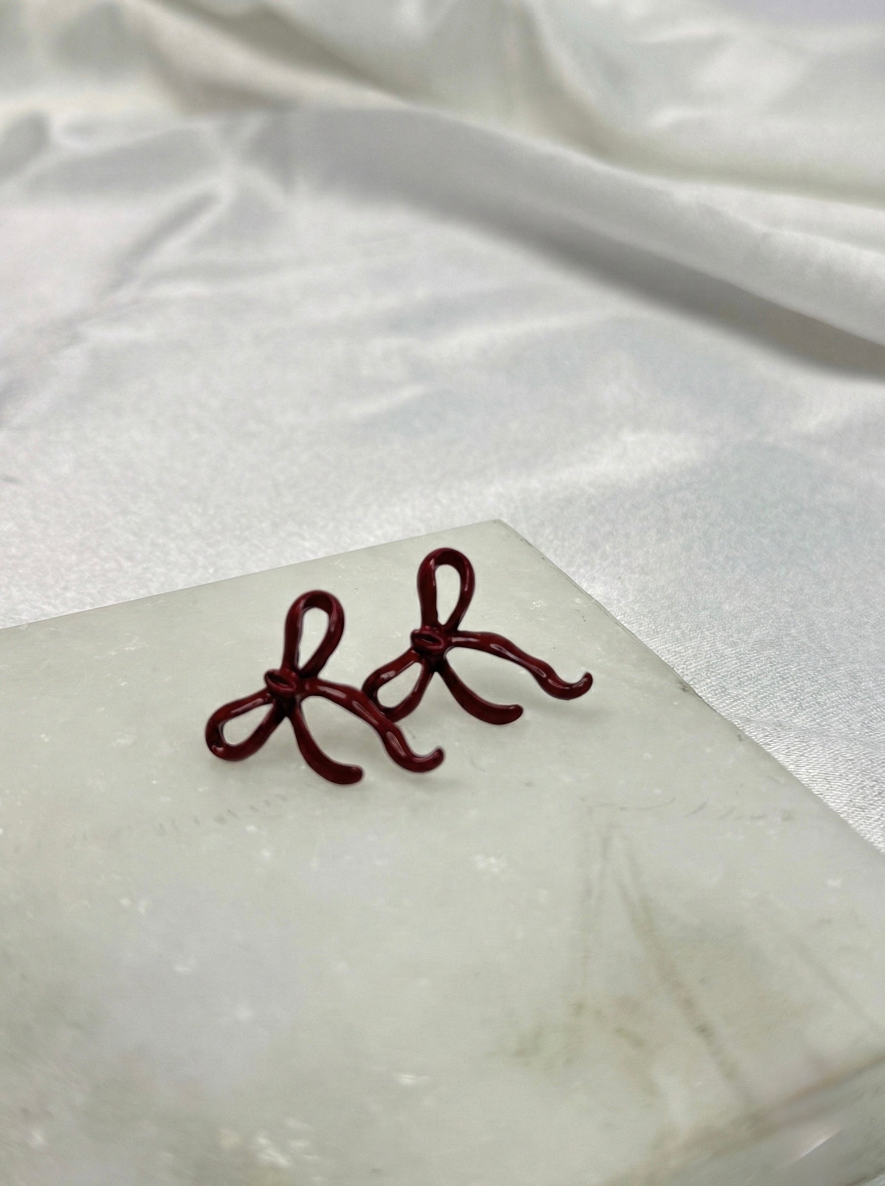 Designed in Seoul, Korea, these earrings embrace the 2025 global movement toward "refined-cute" fashion. Featuring a rich, high-gloss Oil Red finish, these bows offer a sophisticated twist on the viral ribbon trend, mimicking the depth of a vintage cherry glaze. The clean, sculptural lines reflect the Korean "Quiet Luxury" aesthetic—bold enough to be noticed on TikTok but minimalist enough for daily wear.