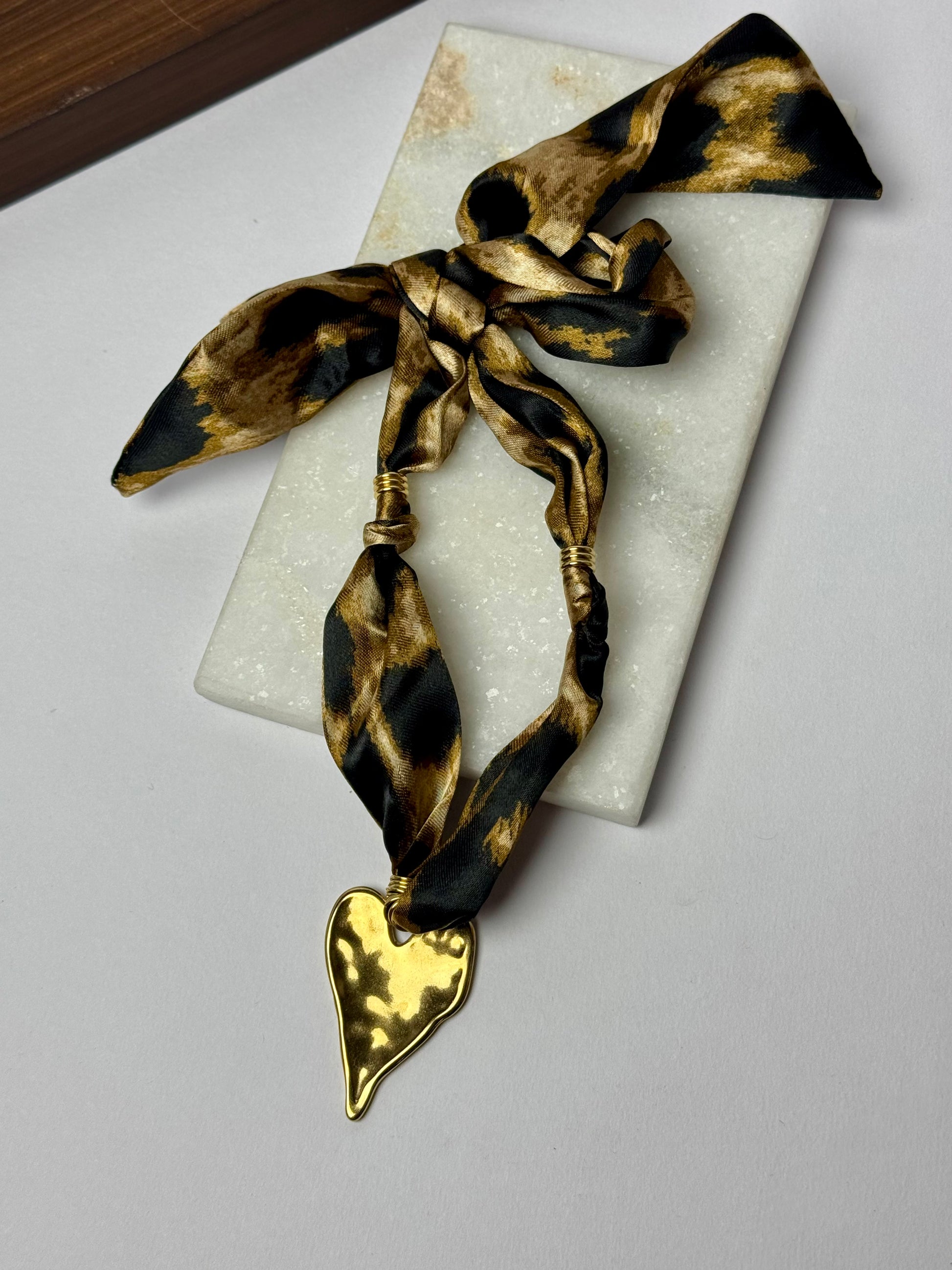 Scarf necklace with 18k gold plated golden heart - Sheessence